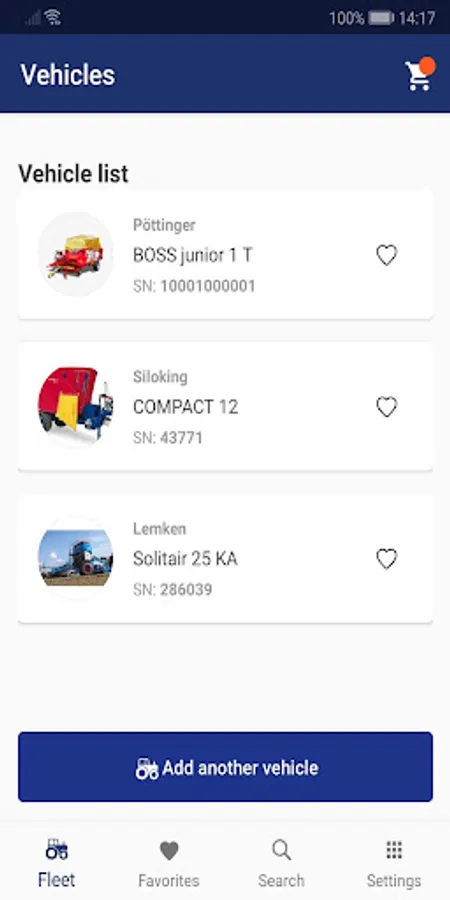 - Identify one or more pieces of machinery from your fleet using the serial number