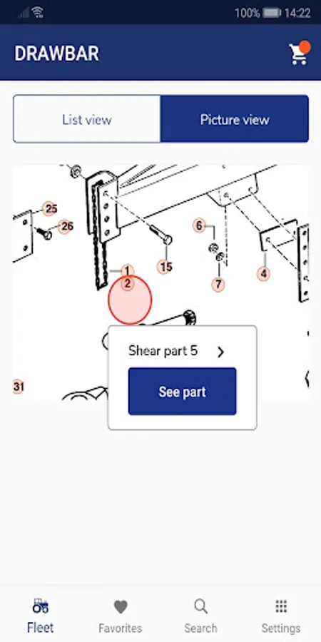 Navigate through the original parts catalogue for your machinery on your mobile device and add the spare parts you require to a shopping basket.