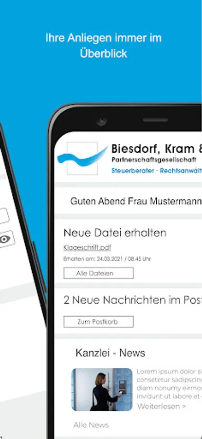 Send messages to your lawyer quickly and easily while on the move. Use your smartphone as a PDF scanner and transfer documents directly via the app.