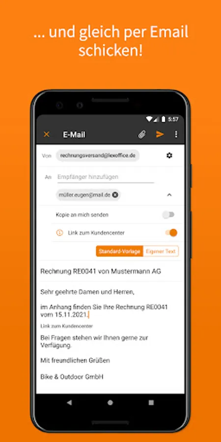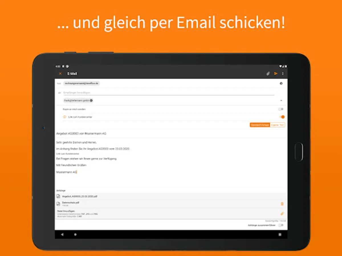 Create quotes, invoices or reminders with just a few clicks and avoid typing errors and number turners. Simply select customer and service - done!
