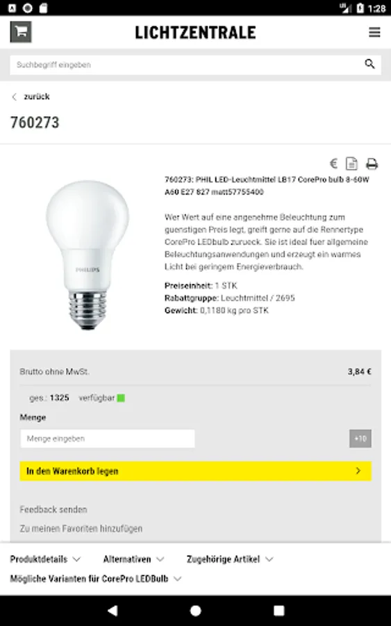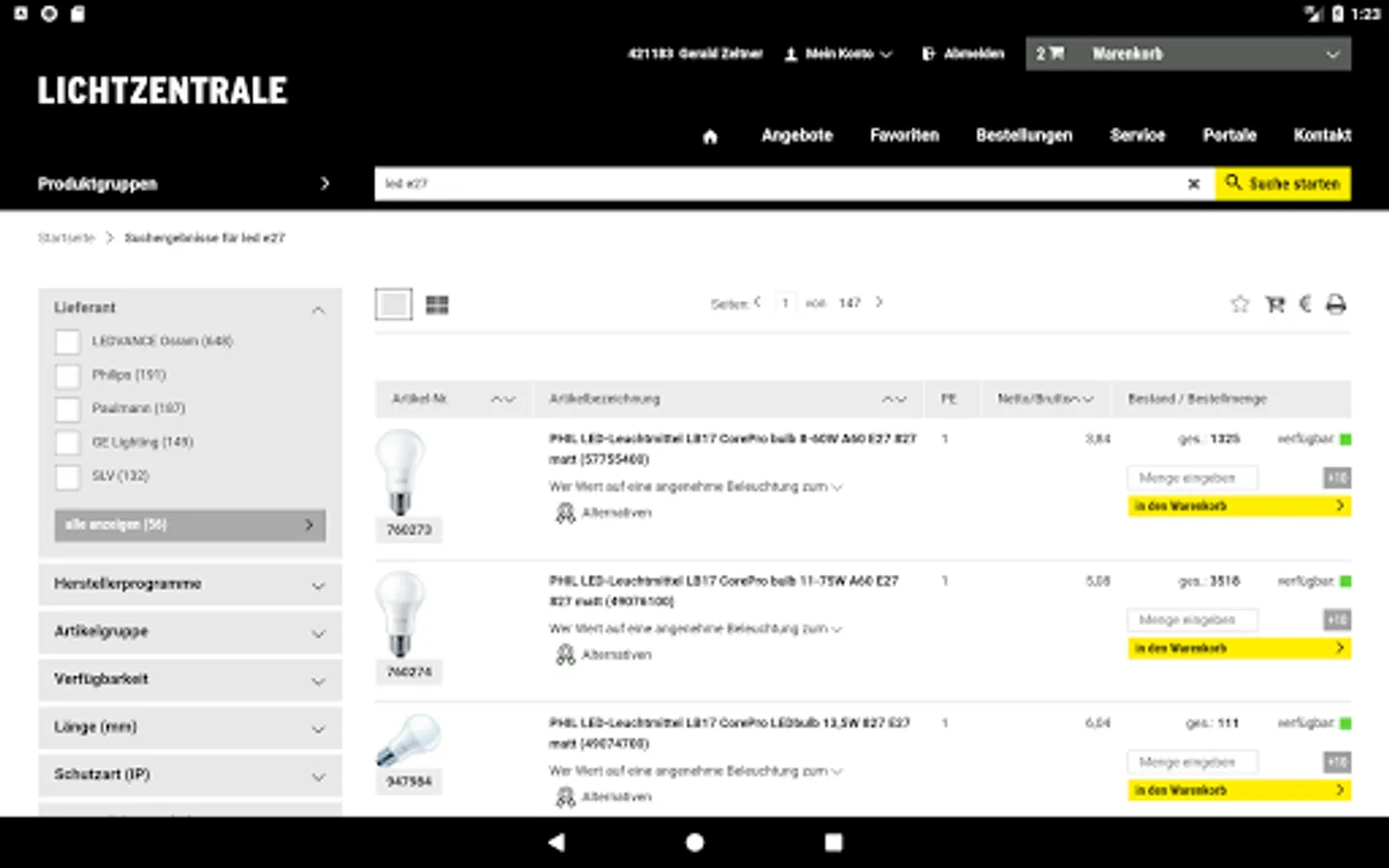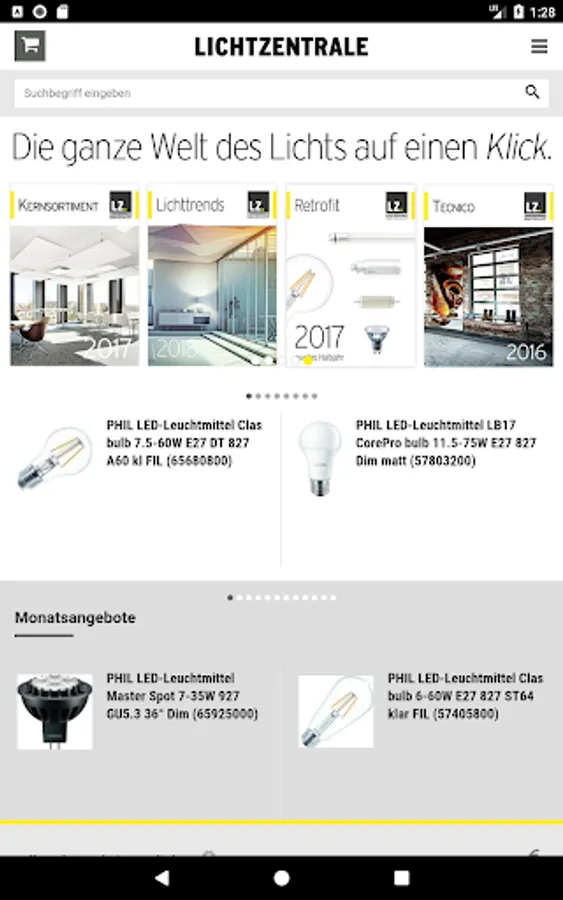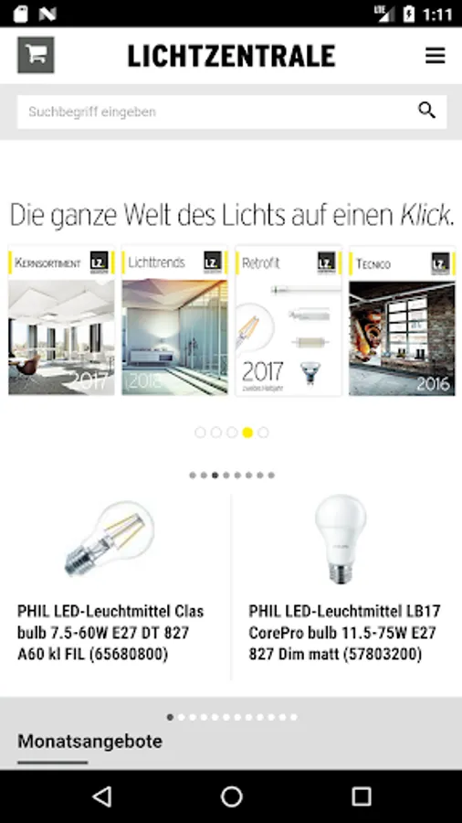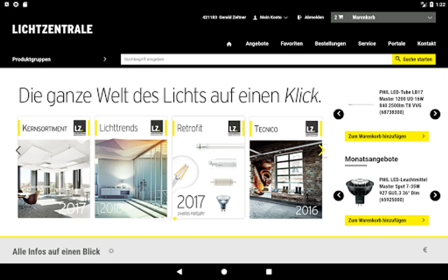 With the LIGHT CENTRAL app they can, as a registered shop customer, now it's only possible on a large assortment LIGHT CENTRAL and purchased. They also have instant access to their daily and object to their offers and stored in the "Favorites" article.