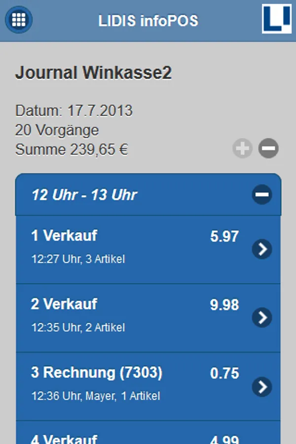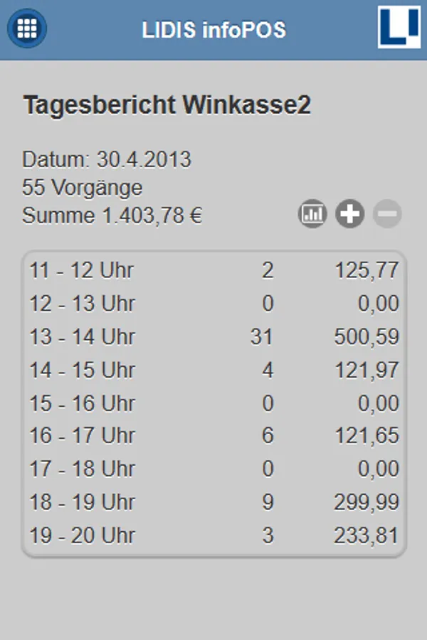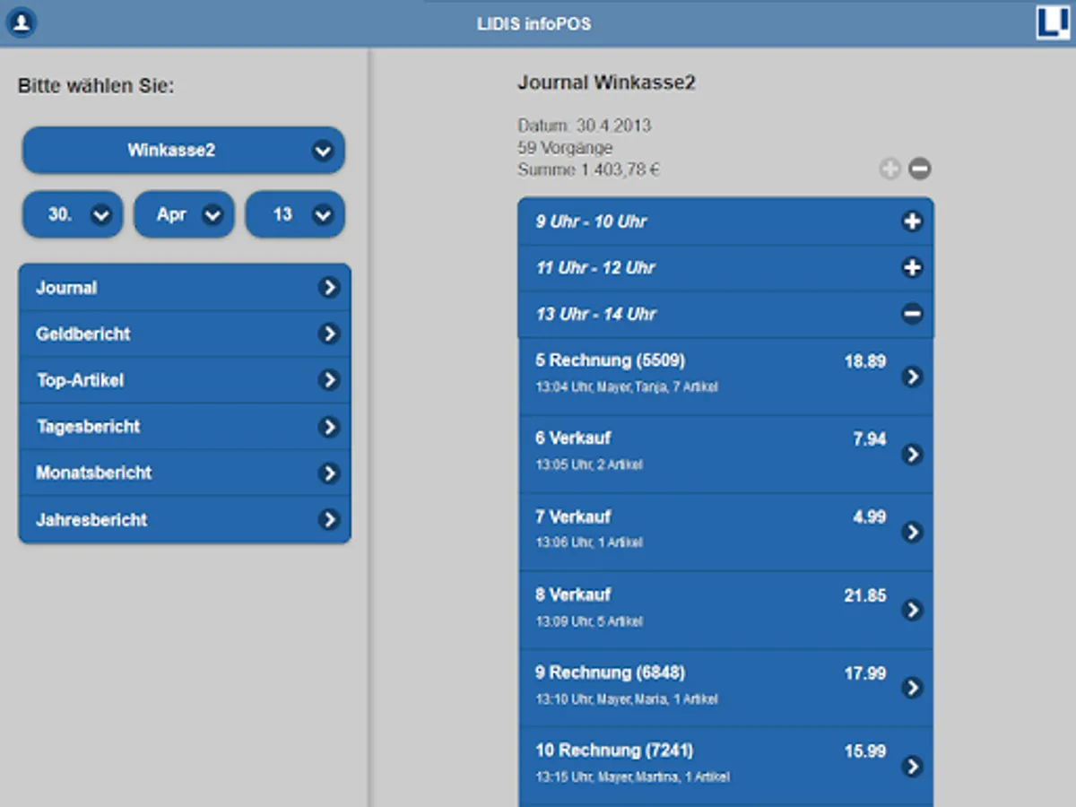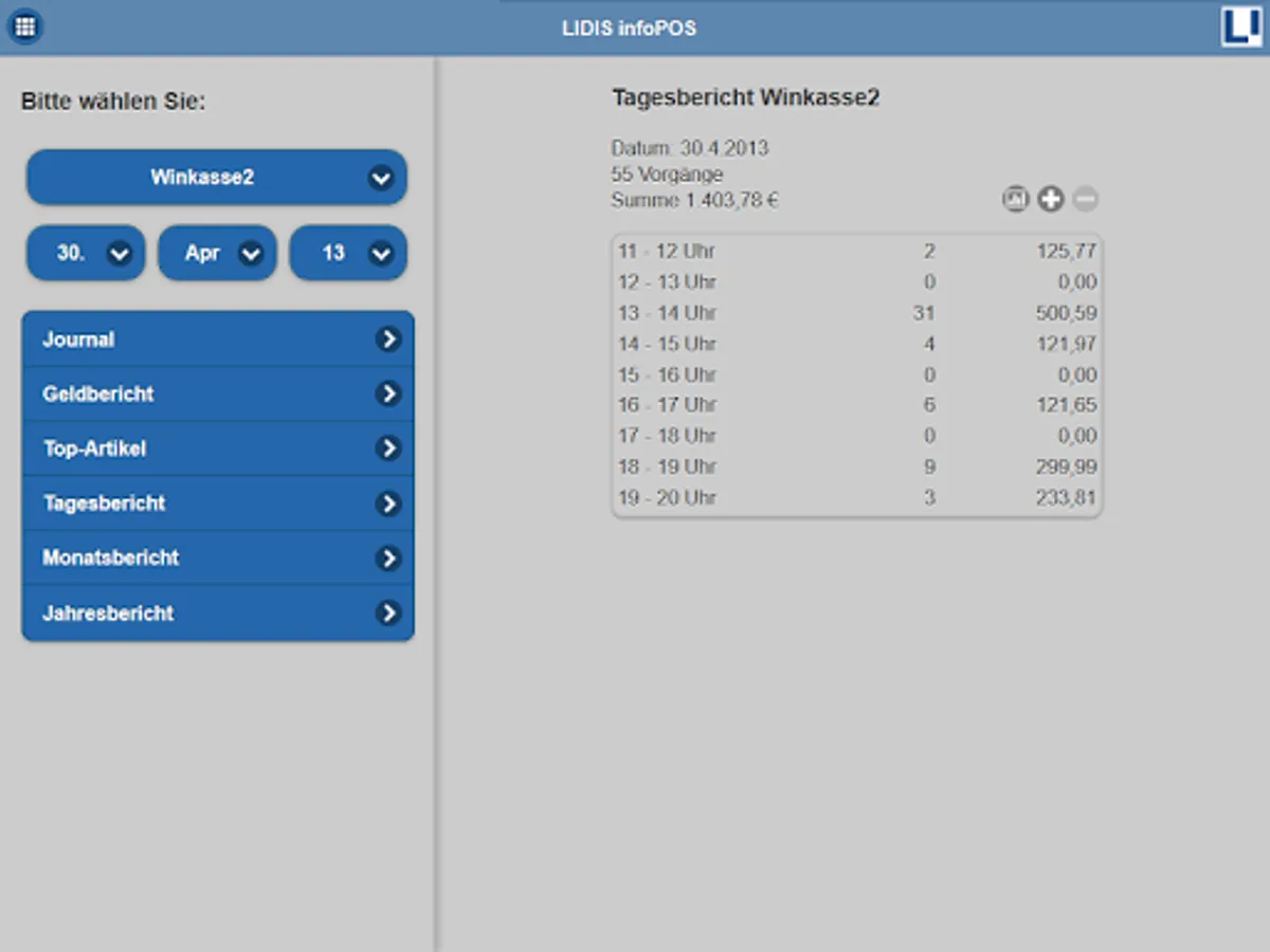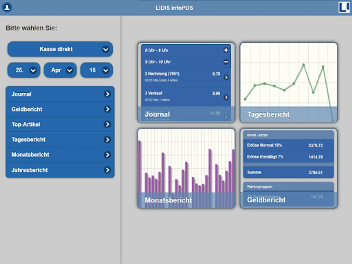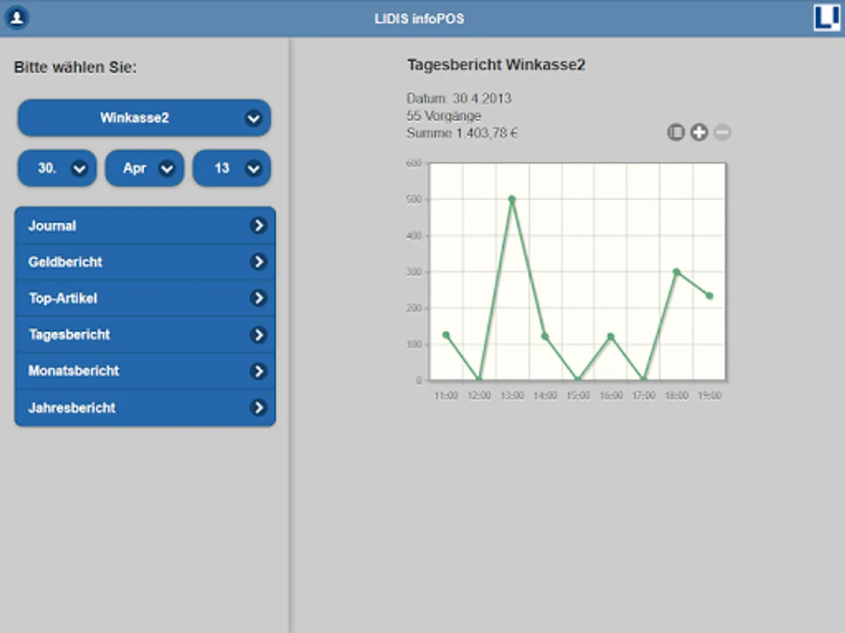 When operating or branch you must always keep the overview. This will now be made even easier with the new app from infoPOS LIDIS team. The complete journals of all cash, money, daily and monthly reports clearly in tabular form and as a graphic - this is the ERP of the future!