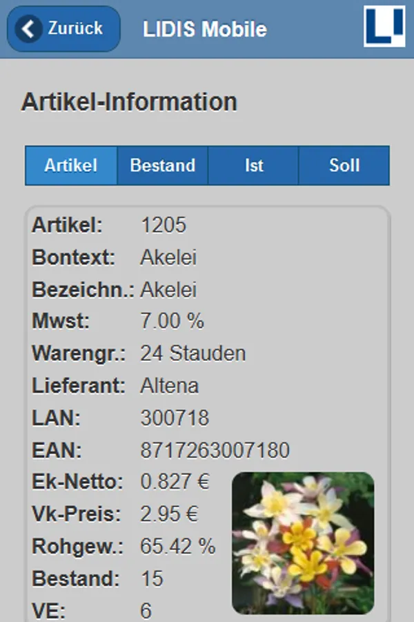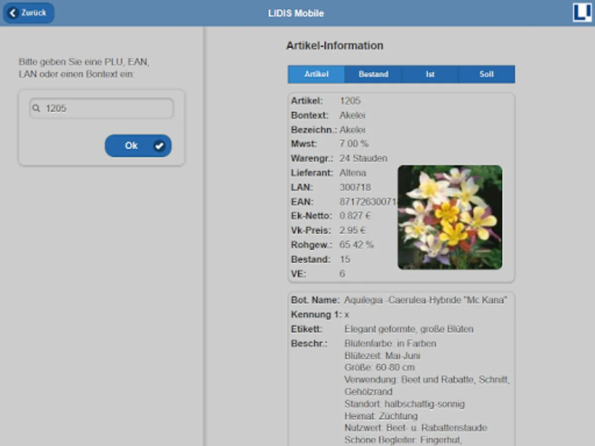 ERP must no longer take place at the desk today. Take your smartphone or tablet and go directly to the shelf, to the delivery ramp, to the customer. Lightning fast, informative and clear, that is the modern way to use LIDIS!