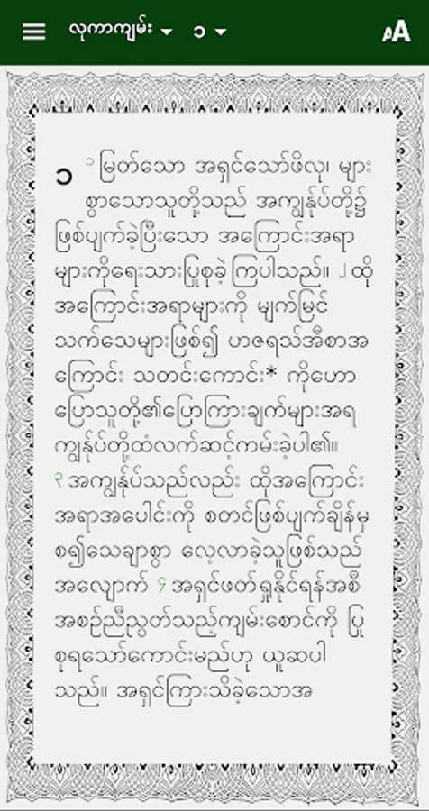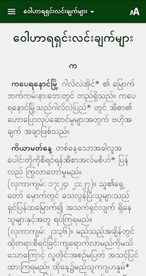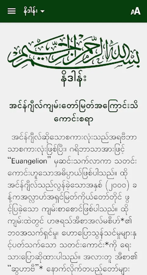 This is a special edition in Myanmar language. Its goal is to enable the readers to easily understand the message of the Holy Injil. The editors took great care to compare the text with the Greek original, study the historical background and consult with experienced scholars, so that it faithfully carries the original meaning.