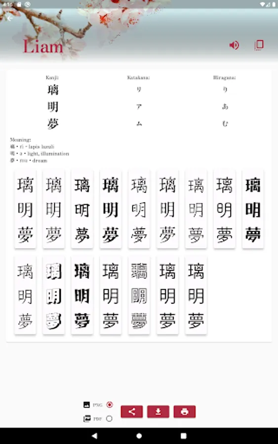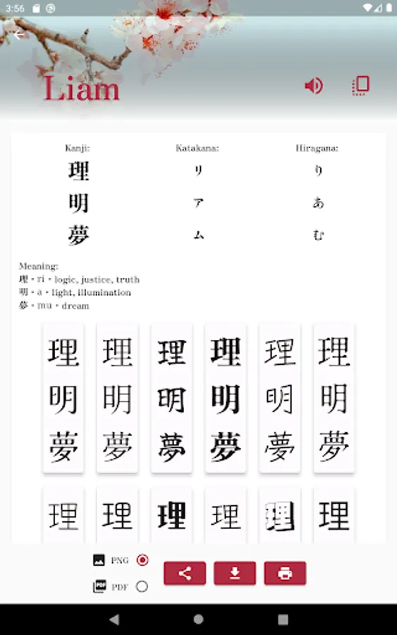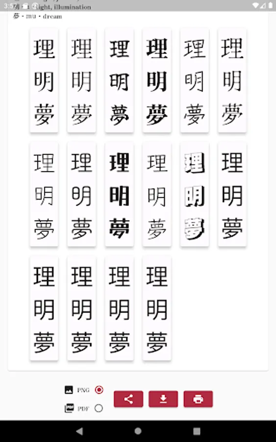 Print or share your Kanji designs! Decorate your walls or make them your next tattoo!