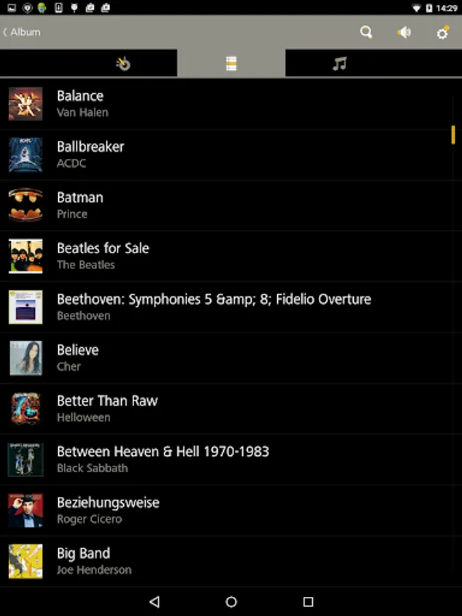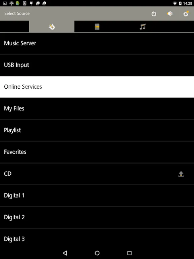 The musicbook: app allows to control all supported sources: