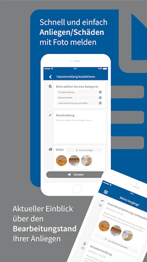 As a tenant or owner, you can report damage or concerns directly with photos via our app. Your inquiries are then available to our employees and can also be forwarded to craft businesses.