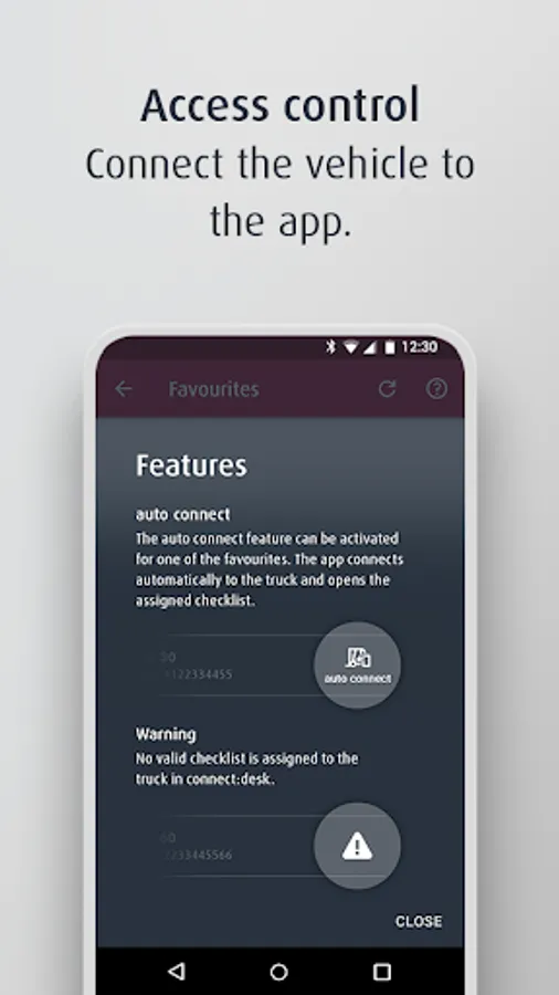 And anyone who doesn’t want to select their preferred truck from the favourites list each time can activate the "auto connect" feature for one of the favourites: the app then automatically connects to the truck and opens the assigned checklist. Could it be any easier?