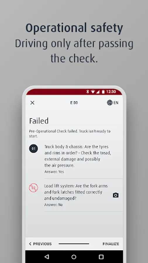 To increase operational safety in the storage area and on company premises, the truck is only enabled once the driver has completed the checklist without identifying any defects.