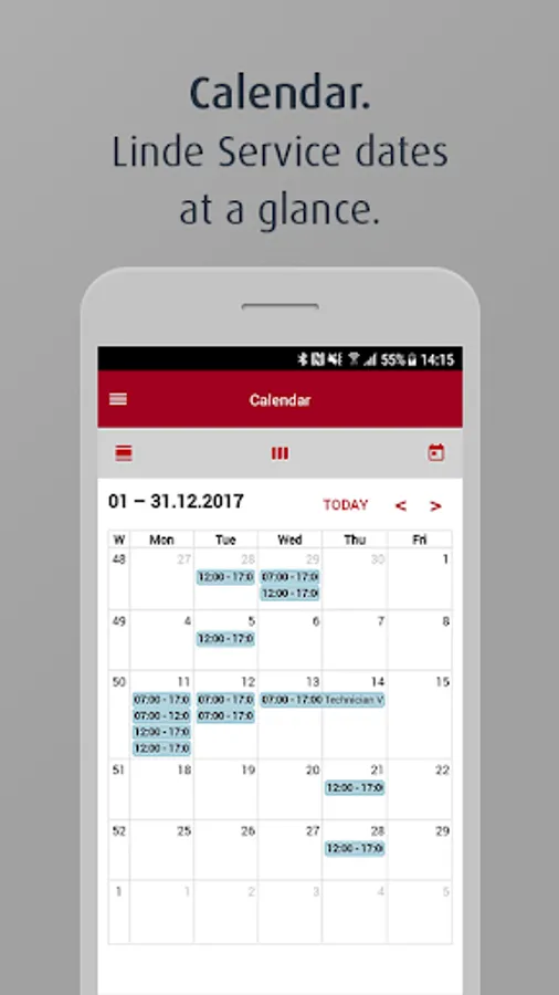Linde Service dates at a glance. All visits of our engineers will be shown on this view.