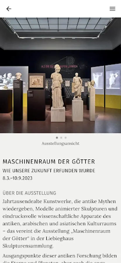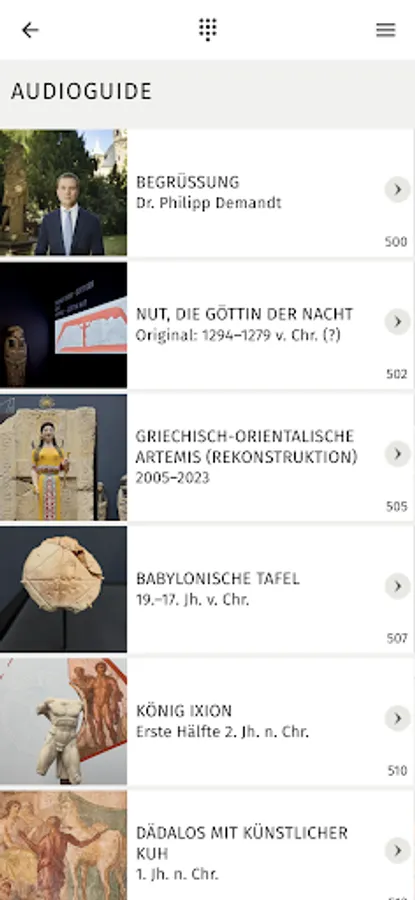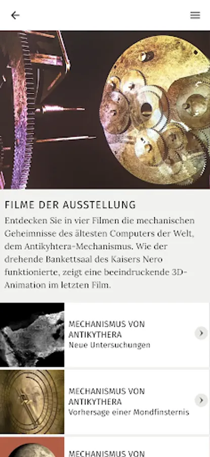 The audio guide accompanies you through the long history of technology and science: From antiquity to the age of industrialization, the deep connection between technical inventions and art can be experienced using outstanding objects. The app contains audio tracks and images for around 20 stations and has a duration of around 60 minutes.