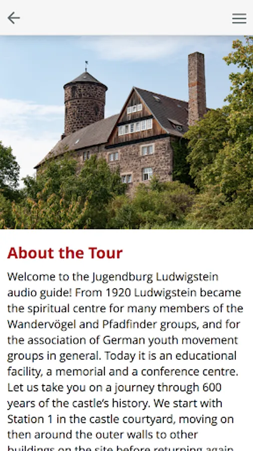 The official Audioguide to the Jugendburg Ludwigstein! From 1920 Ludwigstein became the spiritual centre for many members of the Wandervögel and Pfadfinder groups, and for the association of German youth movement groups in general. Today it is an educational facility, a memorial and a conference centre. Let us take you on a journey through 600 years of the castle’s history.