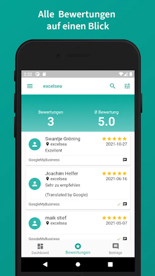With the Markee app, you not only have an overview of your ratings on the go, you can reply to them directly from your smartphone!