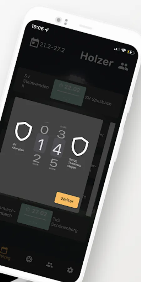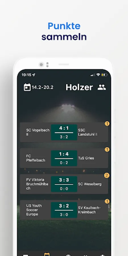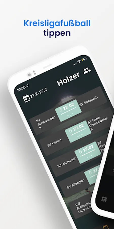 A class, B class, C class Kusel/Kaiserslautern and district league West Palatinate can currently be typed in by swiping in the match day view.