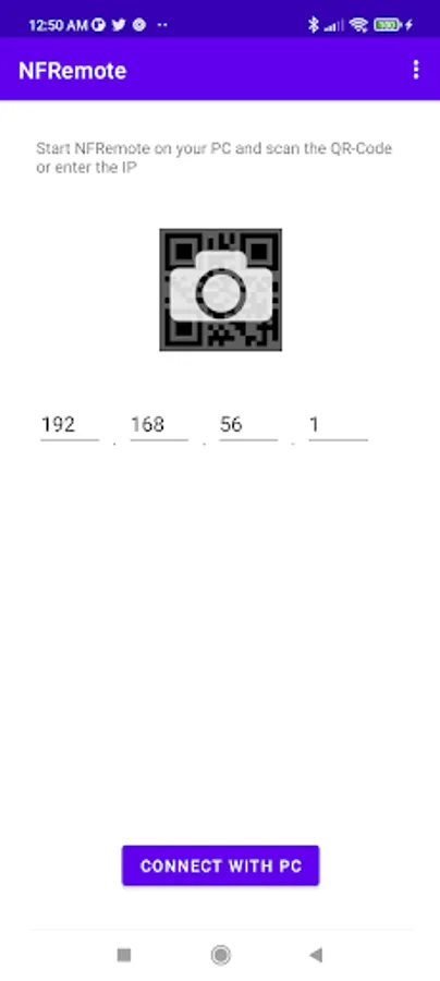 NFRemote must first be started on the computer. After that, the QR code can be scanned or the IP address can be entered with NFRemote on the smartphone.
