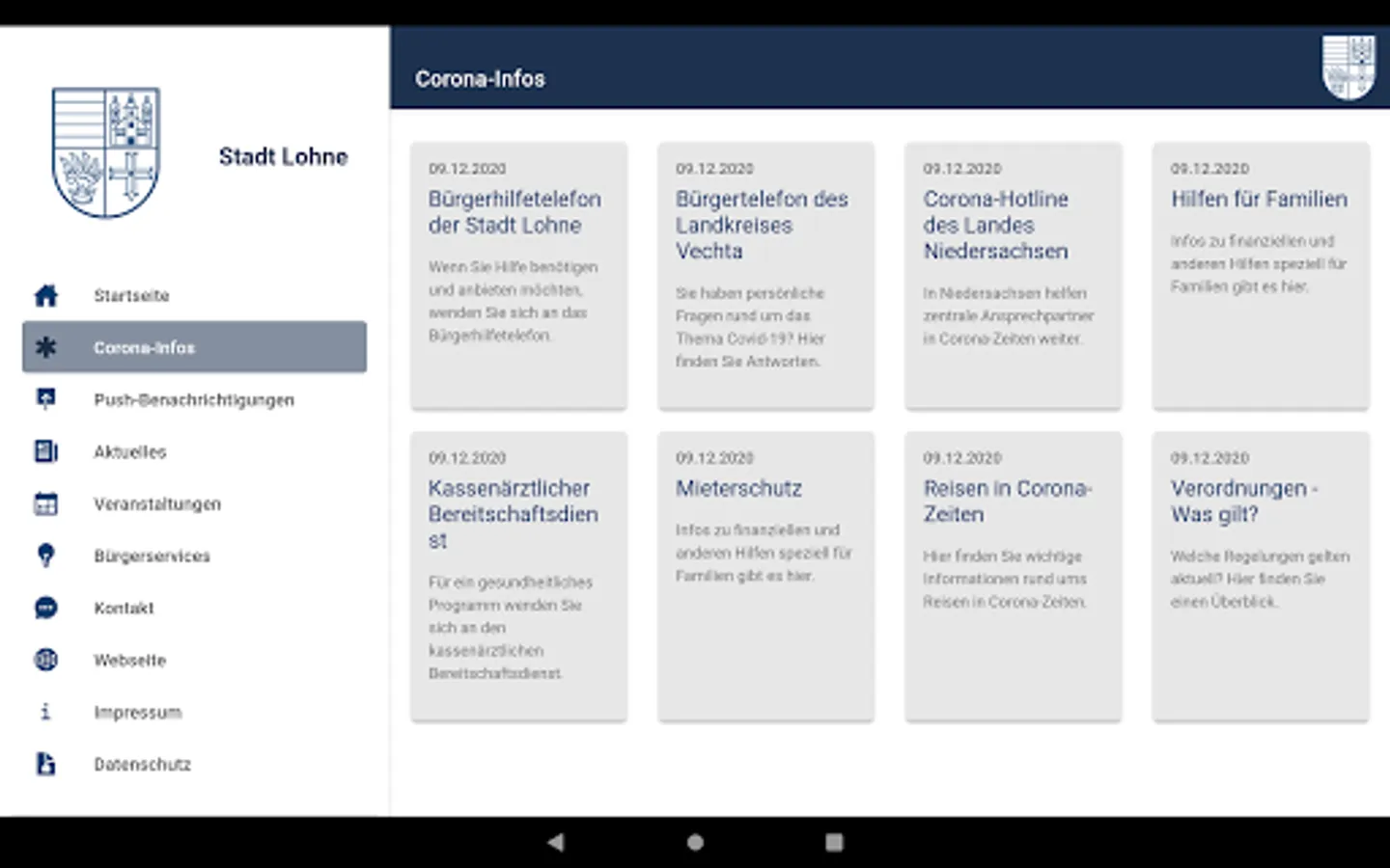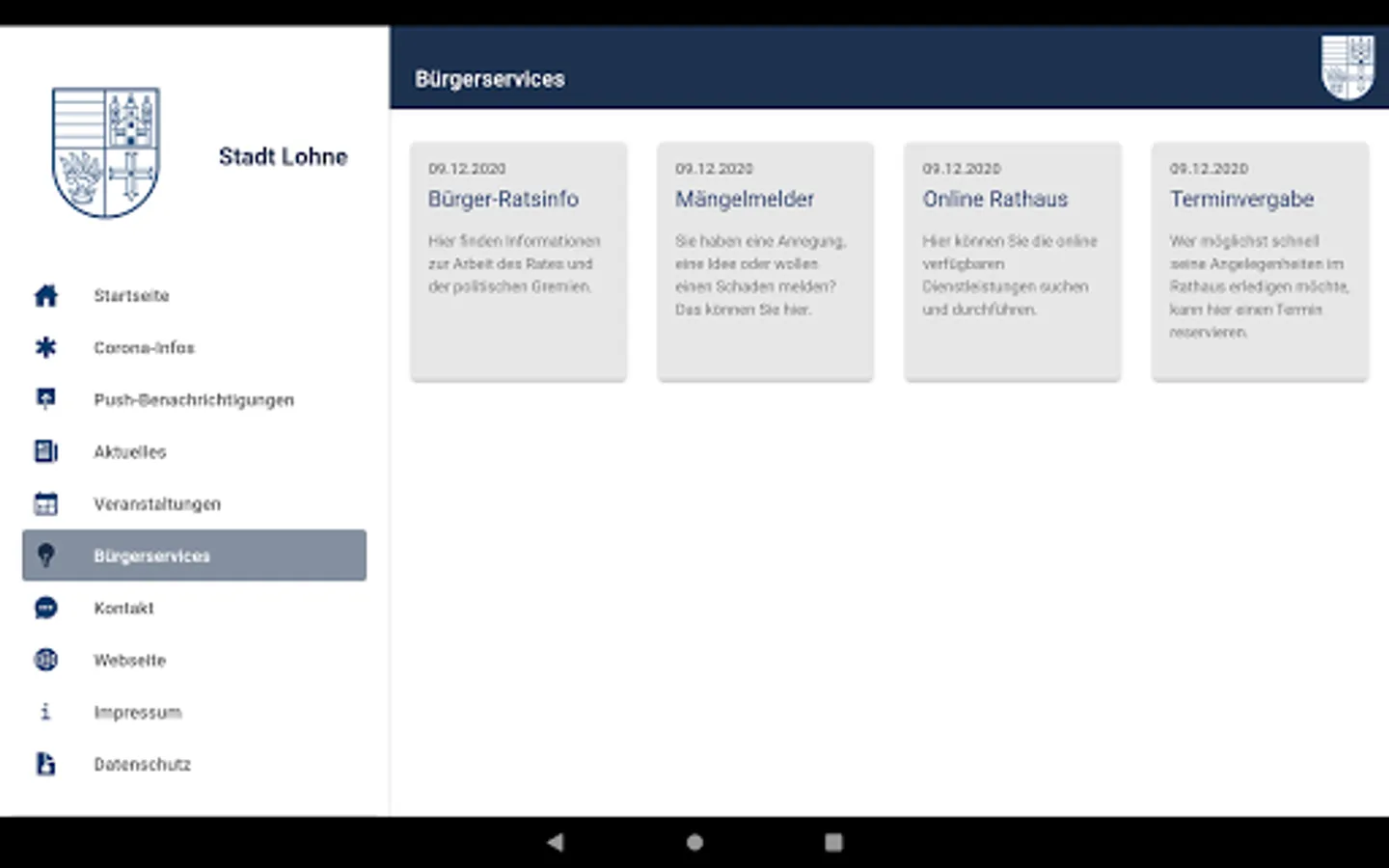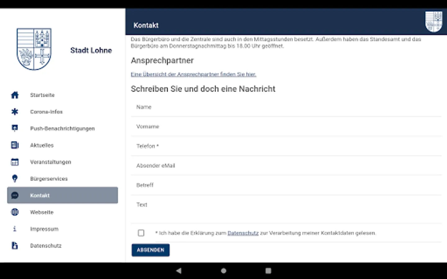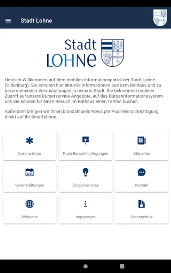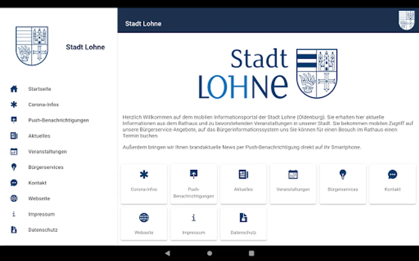 This app is the mobile information portal for the city of Lohne (Oldenburg). Here you get the latest information from the town hall and upcoming events in our city. You get mobile access to numerous citizen service offers such as the deficiency reporter, to the citizen information system with the documents of the political bodies and you can find the contact person for your concerns here. You can already book an appointment for a visit to the town hall via the app.