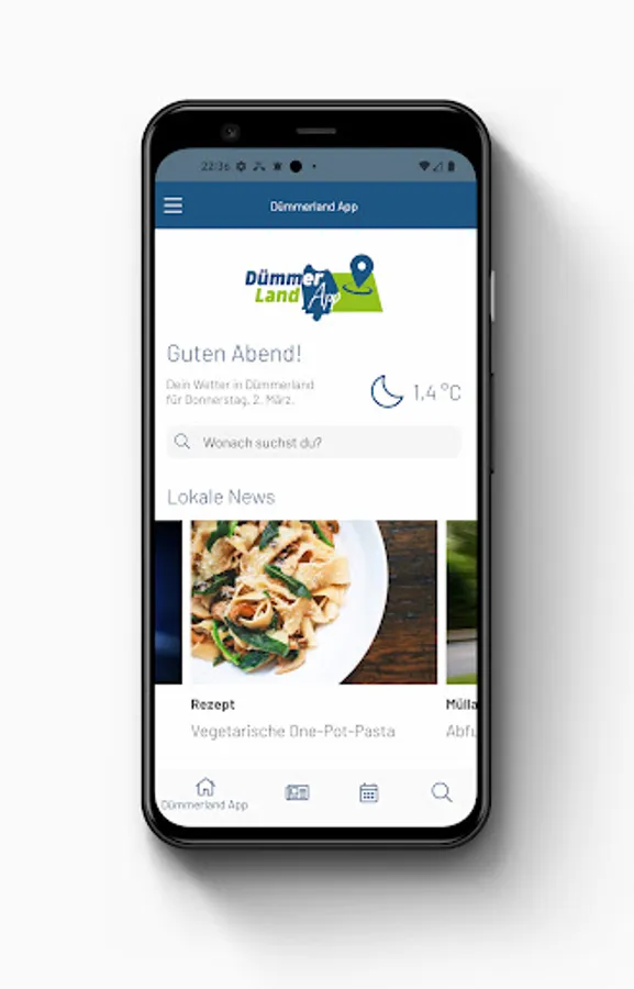 With the Dümmerland app you get exactly the information and tips you need - at any time of the day: in the morning all the latest news from Dümmerland, at lunchtime suitable restaurant locations for your lunch break and at the end of the day there are concerts, visits to the cinema or exciting tips for going out in the Dummerland region.