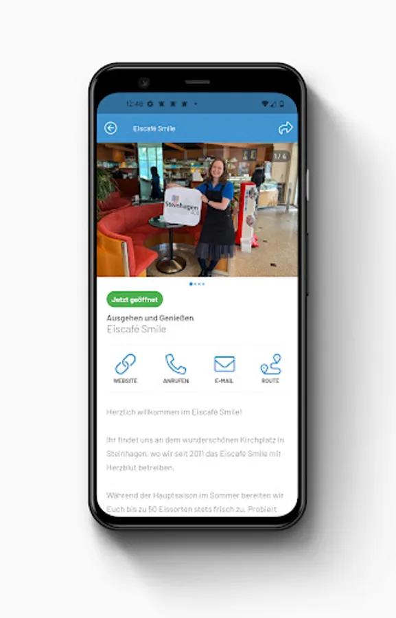 With the Steinhagen app you get exactly the information and tips - depending on the time of day: in the morning all the latest news from Steinhagen, at lunchtime suitable restaurant locations for your lunch break and at the end of the day there are exciting tips for going out in Steinhagen.