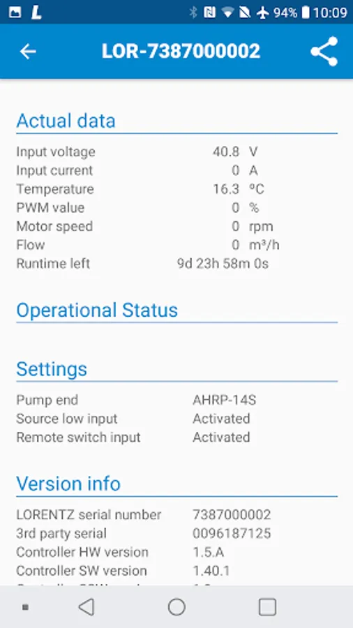 The App pairs with the PS2-100 solar pump controller via Bluetooth™ to allow PayGo codes to be entered, to get key performance data from the pump system and to aid with system diagnostics.