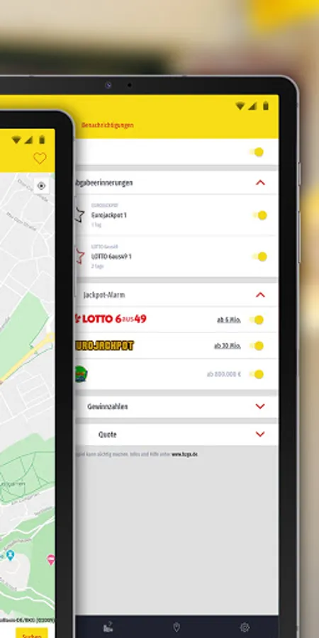 Prepare lottery tickets for LOTTO 6aus49, EuroJackpot and the GlücksSpirale in the app and hand them in at all lottery sales outlets in Saxony-Anhalt. Simply scan the barcode generated in the app at the lottery point of sale and secure your chance for great luck.