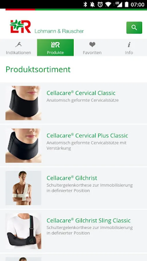 With bandages and orthoses App helps you to find just the right product from the product range of Lohmann & Rauscher.