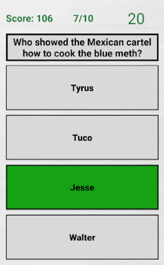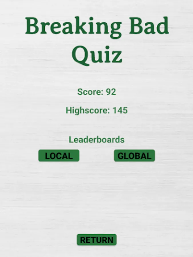 Breaking Bad Quiz contains around 400 questions. 10 questions per round. Try and beat the highscore.