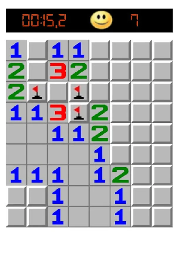 A short (normal) click on a field opens it and shows what is underneath. A long click marks the field with a flag if the user thinks there is a mine under it. A second long click marks the field with a question mark if the user is not sure. Please make sure that you click on the field long enough, otherwise the Android operating system might classify it as a short click, which will cause the game to be lost.