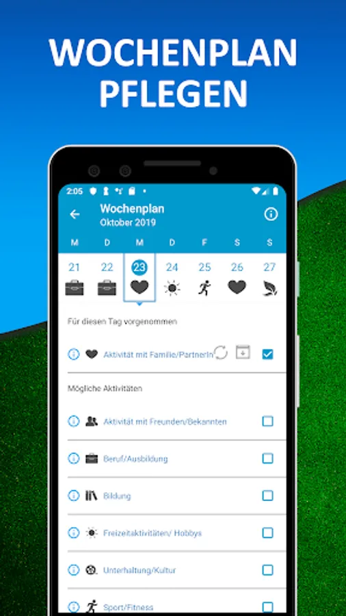 • Plan your activities in the weekly schedule and receive suggestions for your leisure time activities