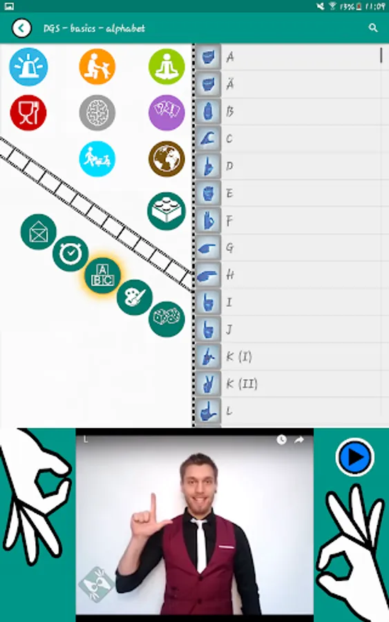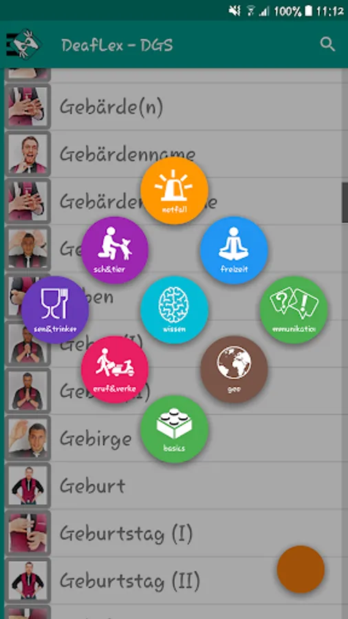 Users can choose a term out of a continuously growing amount of entries and let the correspondant sign be shown as a video.