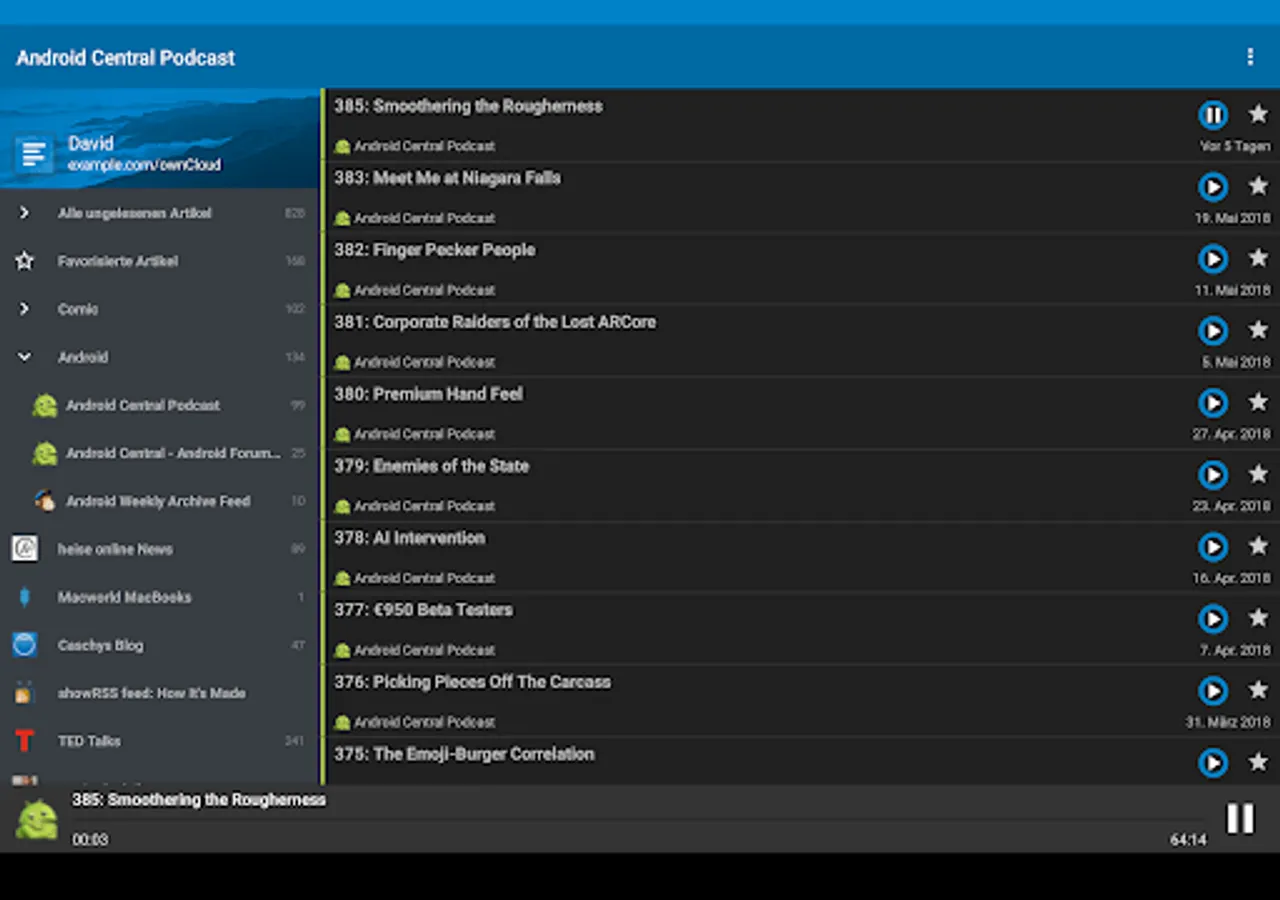 The Nextcloud News Reader App makes it possible to synchronize feeds between Android and the Nextcloud News App.