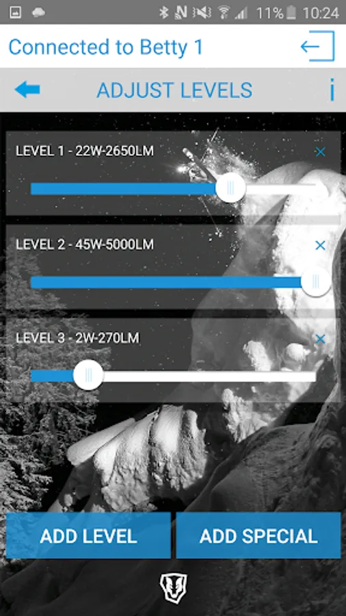 Wilma/Betty: Open the app, hold the button of the light pressed until 5 green LEDs light up. Release the button. Light and app will connect automatically.