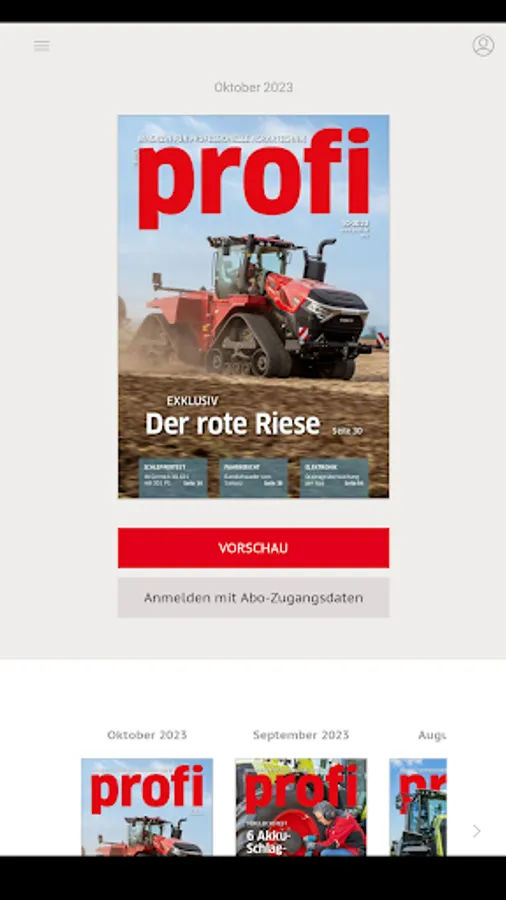 In the ePaper app you will find all the contents of the printed profi edition one to one - practically as a flip catalog. Read the current profi or older issues conveniently anywhere with your smartphone or tablet. You can find additional content such as videos, picture galleries or panorama pictures in the online articles at www.profi.de.