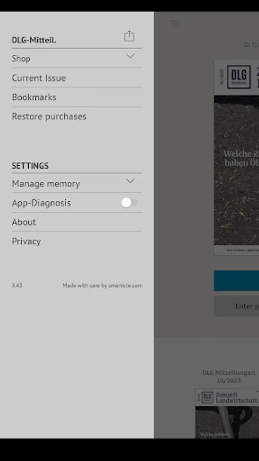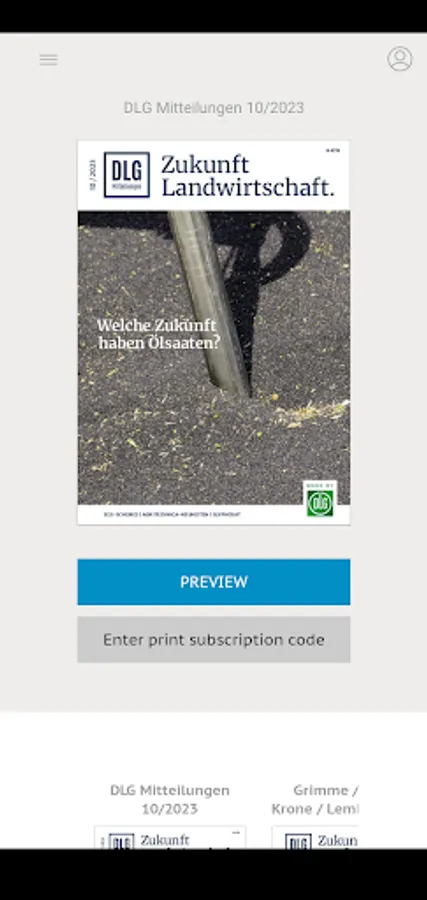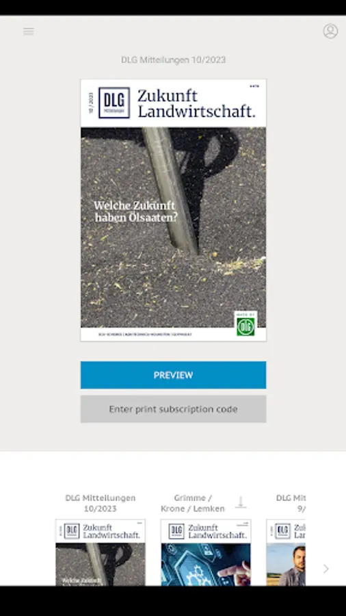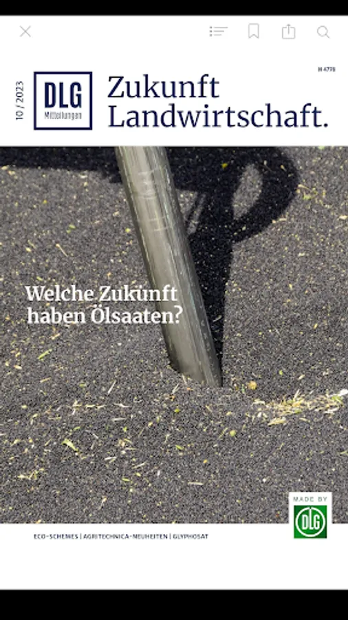The DLG-Mitteilungen app is free. Those with a print subscription have tablet and smartphone access included. The one-time log-on requires only your subscription number: to be found on the address label of your delivered DLG-Mitteilungen. Type it in, and you’re all set for immediate mobile access.