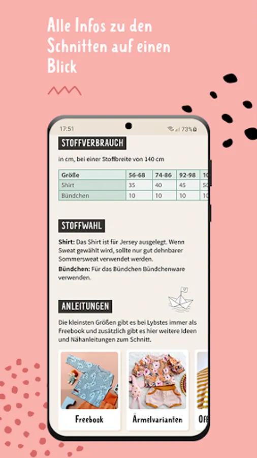 Have you finished your creation and know what your next self-sewn garment should look like? But you've forgotten how much material you actually need? No problem! The app contains all the information about the cuts. In addition to the fabric consumption, you can also check which types of fabric are suitable for which cut. Would you like to try something new or just get inspired? Then browse through the Lybstes sewing instructions that we have compiled for you.