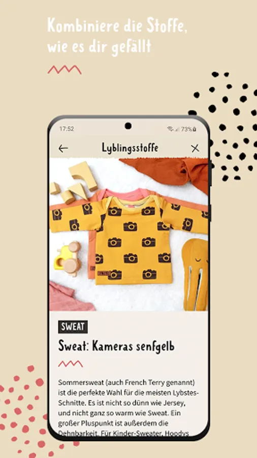 Lybstes designs casual sewing patterns for babies and children. With this app you can now design the patterns according to your own ideas! See your finished creations before you even start sewing them or even buy the fabric for them!