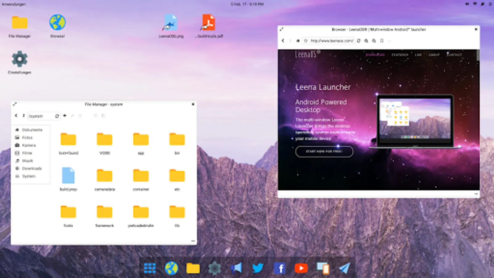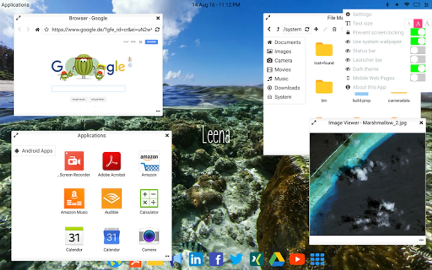 No rooting, no alienating user interface, no messing up of Android internals, no hacks. Leena Launcher is "just" an android app that seamlessly integrates into Android ecosystem and allows to use Android as a full blown desktop operating system. It allows you to use your mobile device where you previously defaulted back to a laptop or desktop PC. Comfortably write long emails, browse on a larger screen, or do some heavy work, or do whatever you like to do.