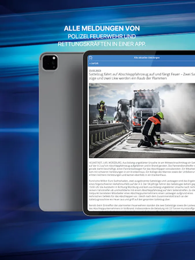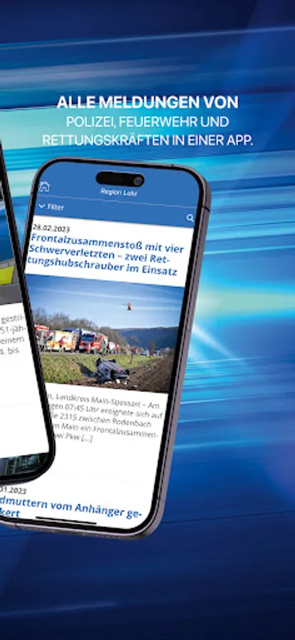 With BLAULICHT MSP you are always well informed about current operations by the fire brigade, police and rescue services in the Main-Spessart district. The reports are divided into the four regions of Marktheidenfeld, Lohr, Karlstadt and Gemünden. You can also search specifically for reports from your location or all reports. You decide whether you also want to receive breaking news directly on the lock screen of your iPhone and thus be informed immediately in the event of a missing person search, current large-scale operations, manhunt calls or road closures.