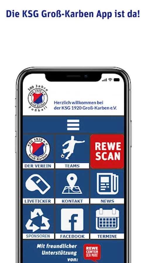 You can even support your club financially by scanning the QR code at the checkout when shopping at the sponsor REWE Center in Karben with the integrated scanner. Without additional costs and without providing personal data!