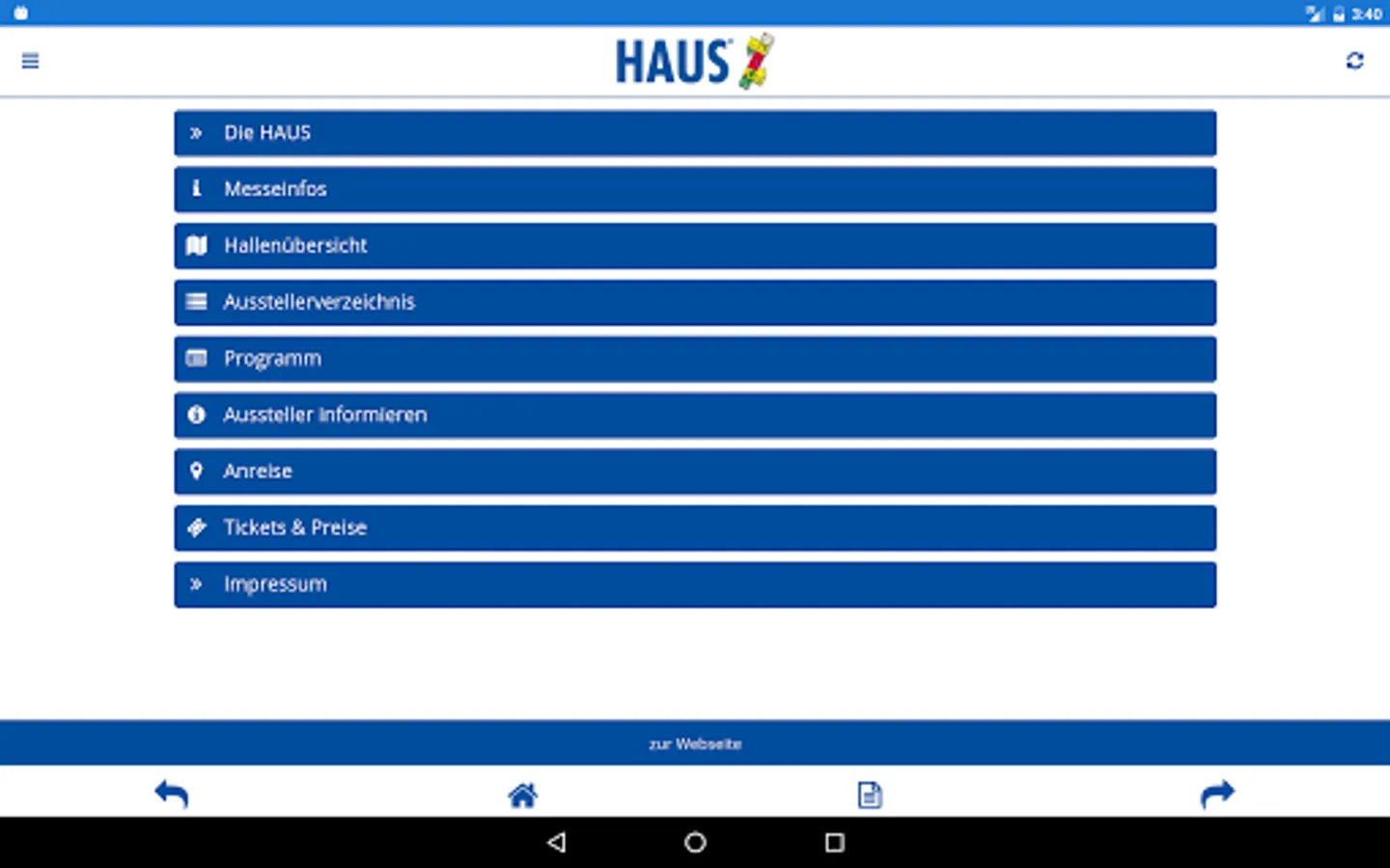 The app for HOUSE you have the full program in the bag: all topics all exhibitors, all lectures, all appointments. Of the route plan to the floor plan you doing all information. Your ticket can be purchased online. So go easy on the checkout line over ...