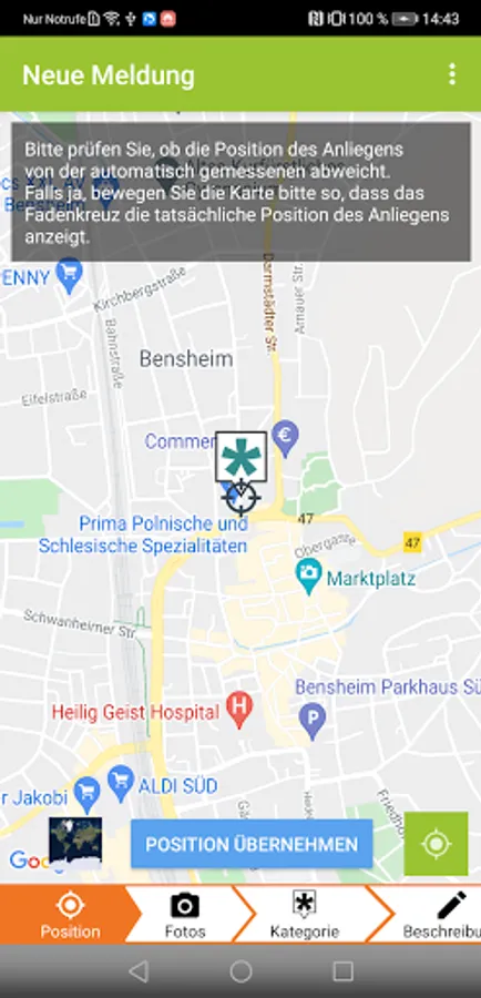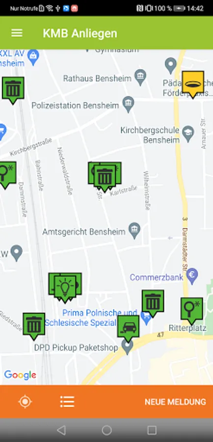 You have not a smartphone? The deficiencies or concerns can also be entered directly on the website: http://www.kmb-bensheim.de/services/service/maengelmelder.html