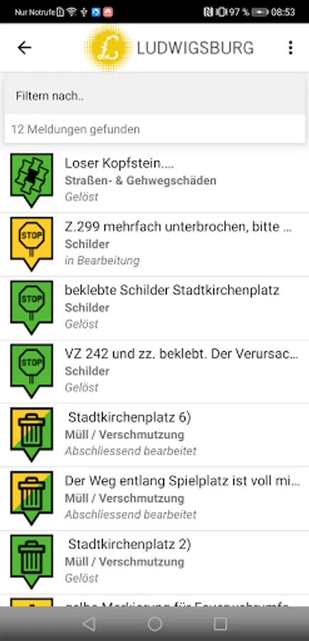 Join us! The city of Ludwigsburg provides a stable environment and thus for visible quality of life. We want you to feel comfortable in your town. You too can contribute. Report us what bothers you, be it a wild garbage heap, a broken game device on an urban playground, holes in the road surface or a broken curb. We provide a remedy.