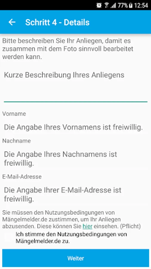 Send us your message simple mobile via mobile phone. We promise: Your report comes within one business day of the responsible agency. , On request within two business days if you sign up with your e-mail address feedback.