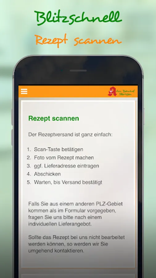 Genial, fast, easy to order drugs via photo. For example, shoot directly at the doctor's prescription, send, done. Your medicines are ready for collection at the pharmacy or come to your home. This service is for all customers who live within a radius of 15km around Illertissen. Simply ingenious - The pharmacy at the station. APOplus - The plus for your health.