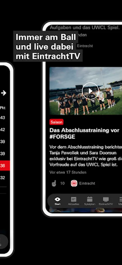 All the news about Eintracht, fan merch and ticket shop, Bundesliga betting game, exclusive raffles or news from your region: it’s all up to you. With EintrachtTV and EintrachtFM, you can follow along with your team anytime and anywhere - including live ticker, goal notifications, scores, flash table, line-up and statistics! Browse in the fan shop, buy tickets, book football camps - mainaqila combines the whole world of Eintracht experiences in one mobile app.