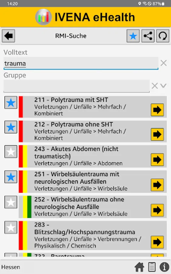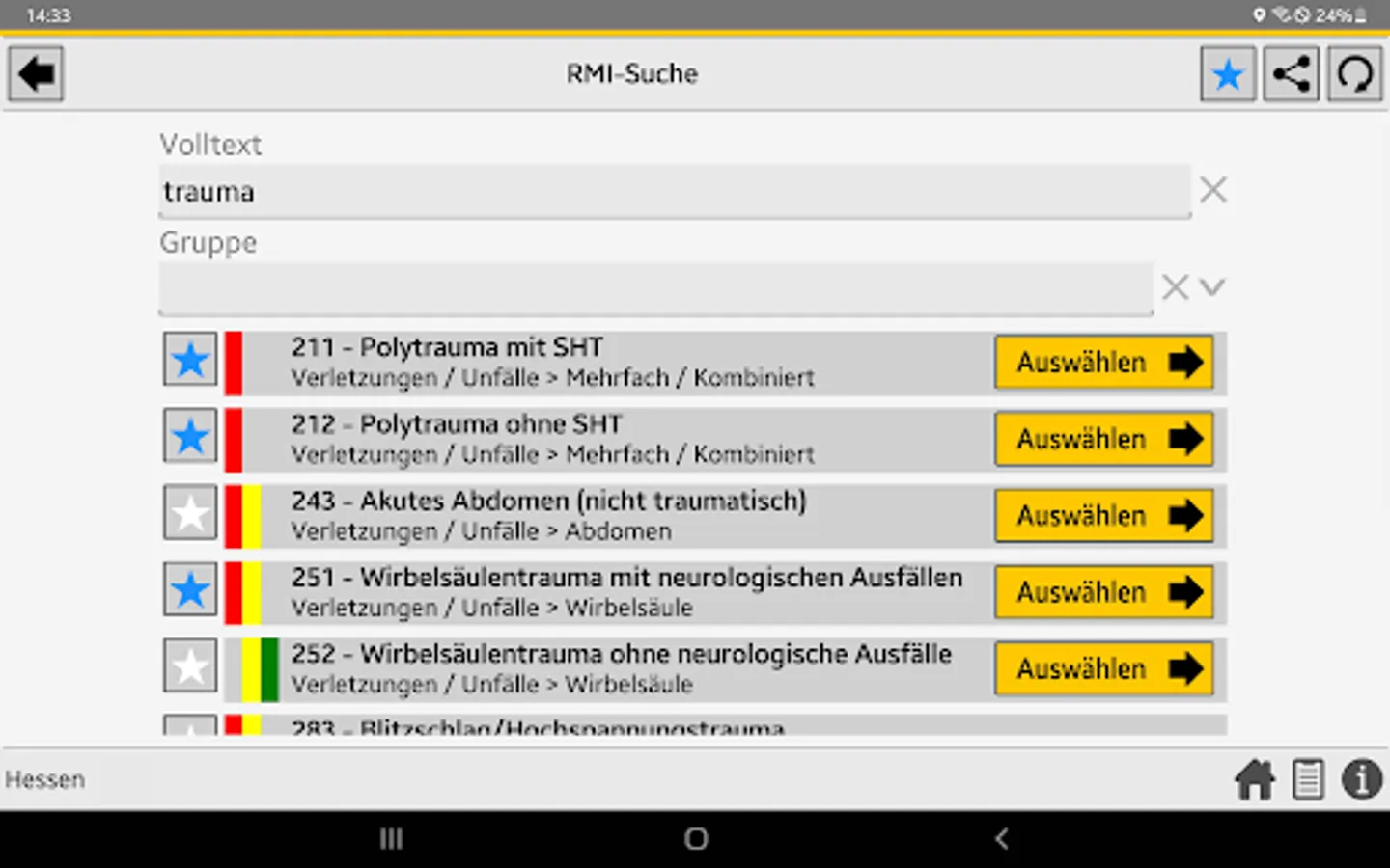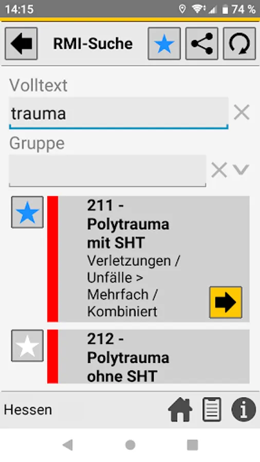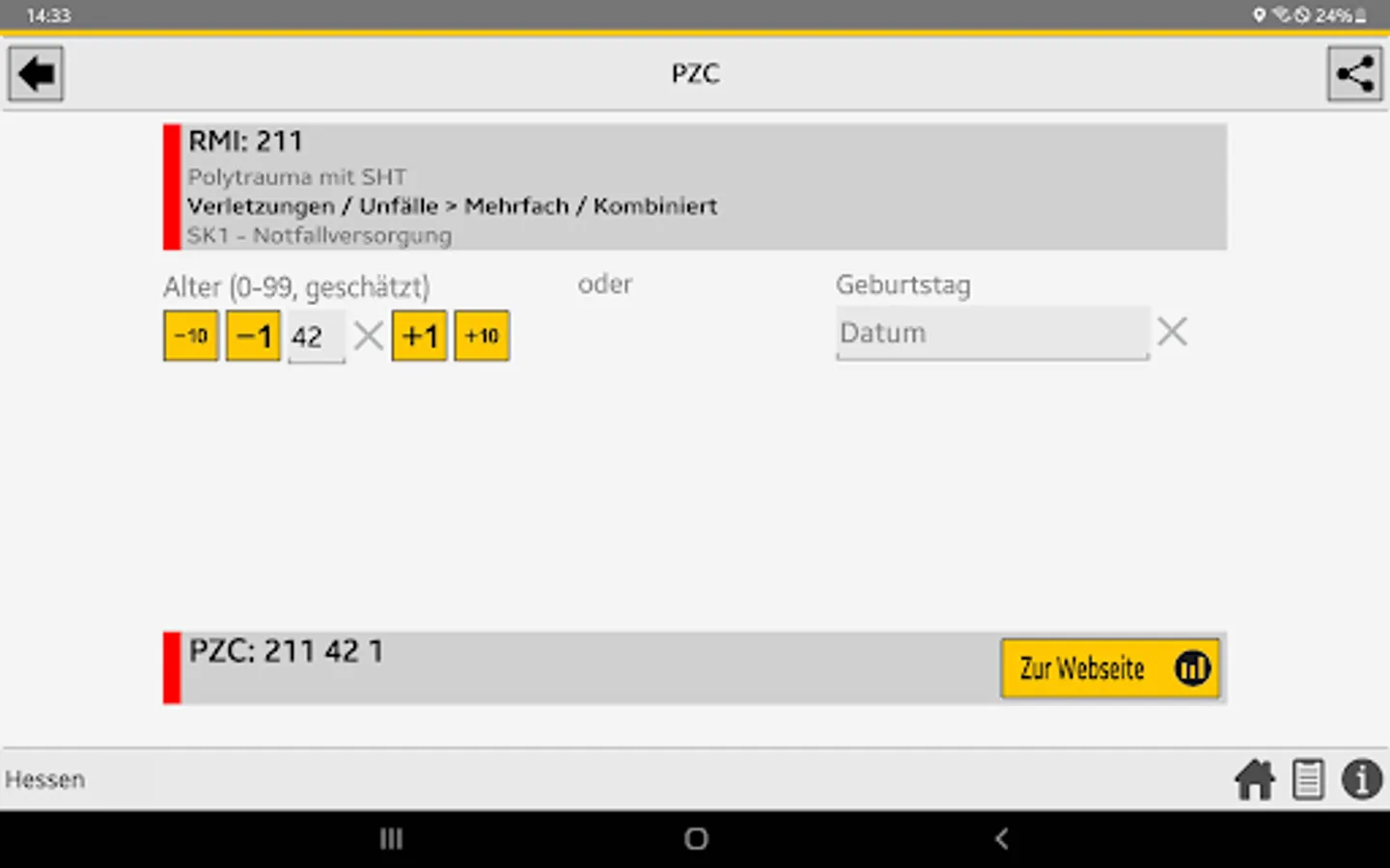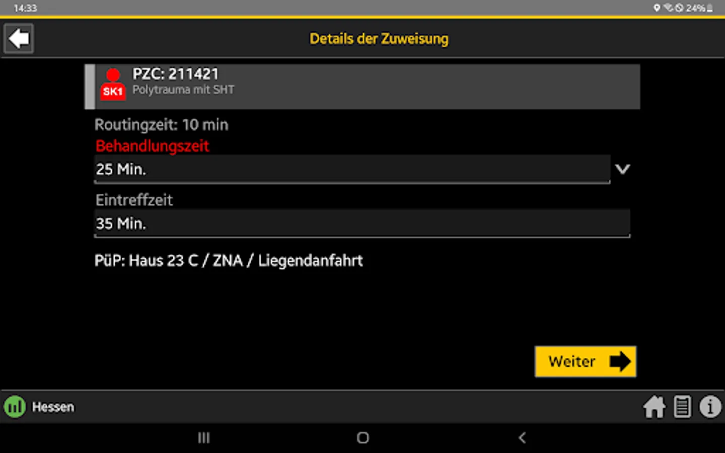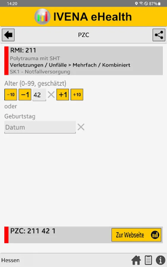 When the central control center is deployed, the rescue service transmits the initial diagnosis using the so-called PZC (patient assignment code). This app helps EMS personnel determine the correct PZC. If login data is available, the patient can be referred directly to a suitable hospital.