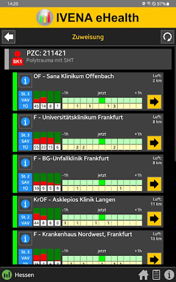 • Call up the IVENA hospital overview.