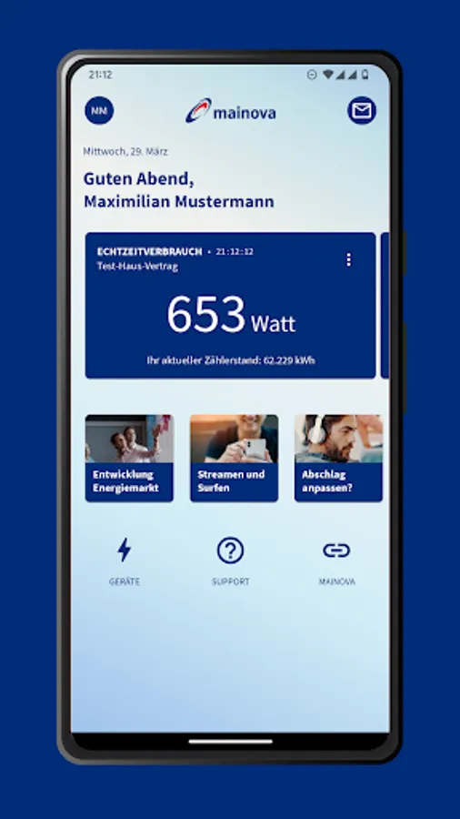 With the Main Cleverer Strom app, you always have a full overview of your daily power consumption. The app visualizes your electricity consumption in real time - you always have full consumption control and see directly when and where there is potential for savings in your household.