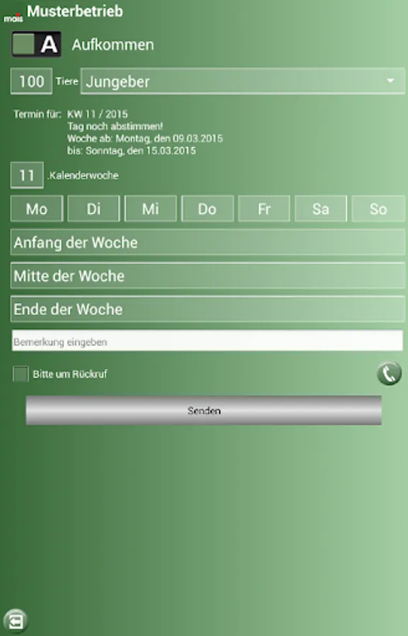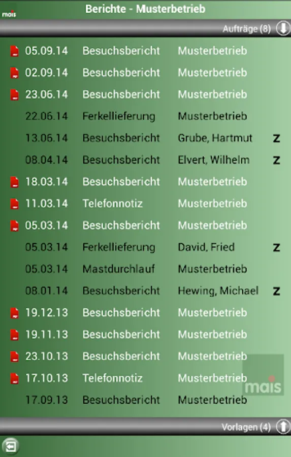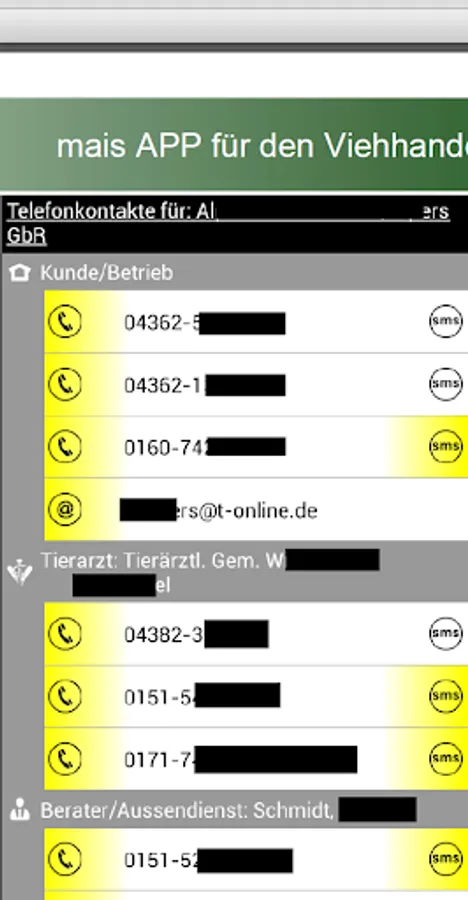 Nutzviehumsätze for farmers / customers of the company incl. Recording of