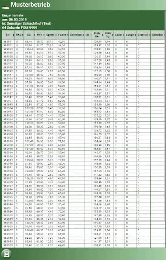Company), as well as providing information -Schlachtauswertungen (pork beef,