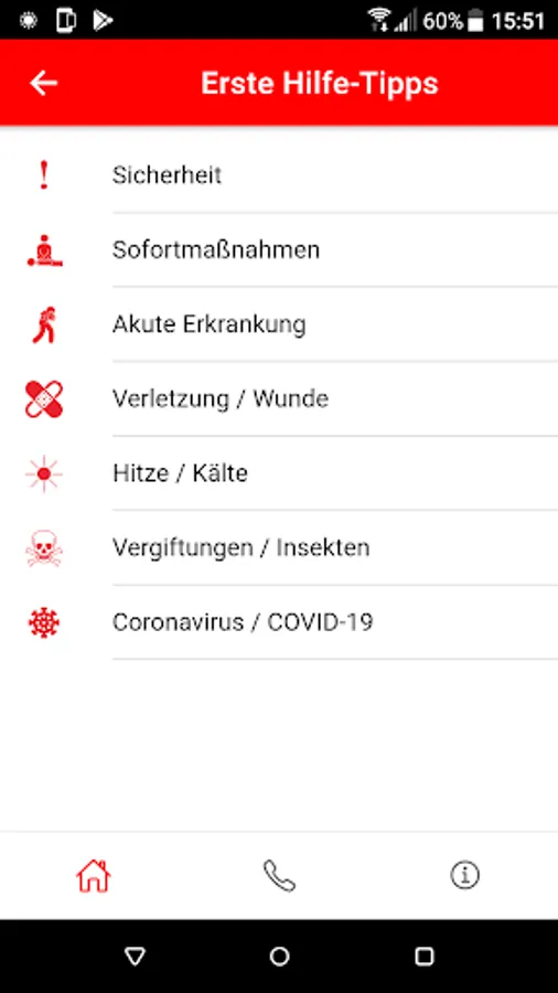 The first aid app of the Malteser Hilfsdienst offers you the most important topics relating to first aid and first aid in child emergencies at a glance.